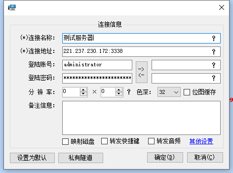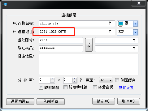 5. 如果連接的是傳統(tǒng)的具備互聯(lián)網(wǎng)IP地址的服務(wù)器的話,只要把連接地址一欄改成服務(wù)器IP地址和端口即可,端口不輸入則默認(rèn)為3389。