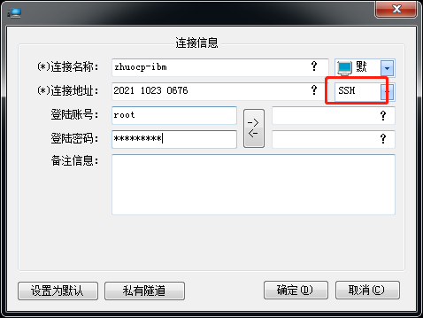 如果被控端是Linux,則修改連接協(xié)議為SSH,如下圖所示: