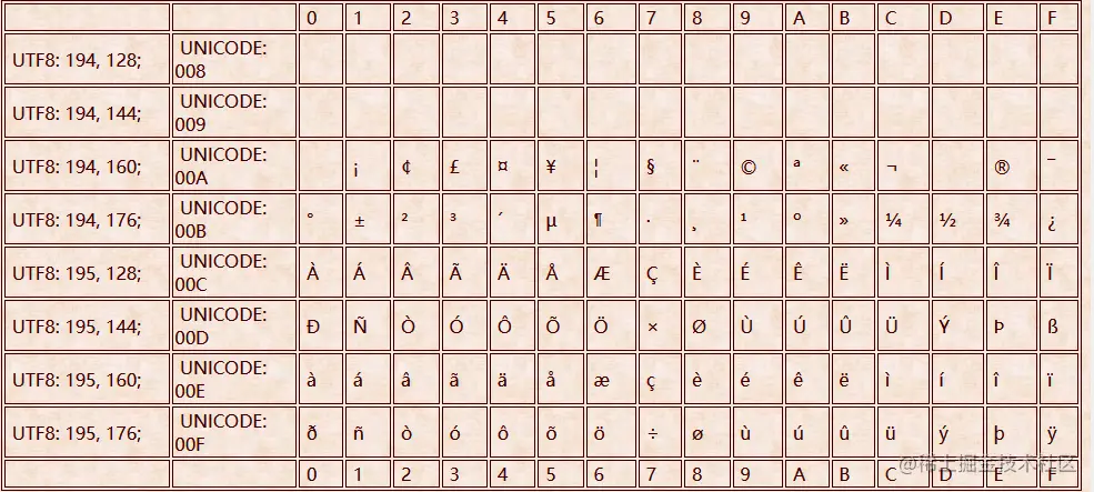 ASCII 額外擴展的版本 EASCII,這里就可以使用一個完整子節(jié)的 8 個 bit 位表示共 256 個字符,其中就又包括了一些衍生的拉丁字母。 可以參見 extended-ascii-table?。