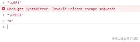 我們之前說過,UTF-16是Unicode的一種實現(xiàn),Unicode的代理區(qū) 0xD800-0xDFFF, 其不代表任何字符。同理,我們采用\u + 四位十六進制方式,如果碼點在這個區(qū)間,返回 ?或者原字符(瀏覽器不同,可能返回不同), 當然其他的碼點也可能還沒設定值或者是不可打印的。