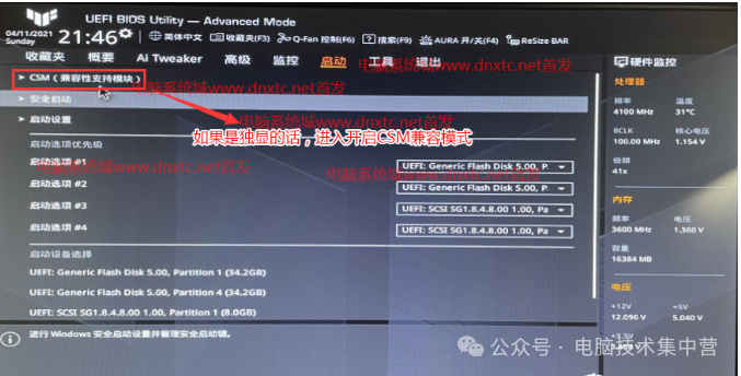 Intel 10代及以上cpu(10/11/12/13/14代)能安裝win7,但需要滿足特定條件。目前10代及以上cpu組裝機可以安裝win7系統(部分品牌機也可以,但這里不做介紹),10代及以上cpu安裝win7前提條件是必須關閉“安全啟動”和有獨顯的情況開啟csm兼容模式。 ? 目前支持win7集顯的有:i3 10100、i3 10105以及部分i5 10400cpu(10400有部份裝完集成顯卡驅動裝不上及以上CPU需要搭配獨立顯卡安裝win7),支持集顯的機器只有采用400系列主板為提前,H510主板必需要加裝獨立顯卡,安裝時需要采用pe勾選卡logo。特別注意:搭配500以上系列主板一律需要獨立顯卡并需要主板支持開啟CSM兼容模式才能安裝win7。 10代以上cpu(10/11/12/13/14代)安裝win7詳細操作步驟: 2、10代以上cpu的機器安裝win7需要注意在bios中"關閉安全啟"。10代cpu的機器uefi模式安裝win7注意只能采用64位操作系統,uefi模式安裝win7分區(qū)類型要采用gpt分區(qū)。 3、10代cpu的機器uefi模式安裝win7時如果采用的集成顯卡可以不開啟csm,但如果采用的是獨顯有csm選項時一定記得開啟。目前支持win7集顯的有:i3 10100、i3 10105以及部分i5 10400cpu(10400以上CPU需要搭配獨立顯卡安裝win7),最新的十代i5 10400存在著兩個不同的步進版本,一個是Q0,一個是G1,目前Q0不支持集顯安裝win7,G1支持集顯安裝win7,購買的時候要仔細。另外10400以上CPU可以買塊亮機卡(比如GT 730,性能比uhd 630顯卡驅動要強一點)進行安裝win7.特別注意:i3 10100和i3 10105安裝win7采用集顯需要搭配400系列主板,500系列主板搭配i3 10100和i3 10105也是不能采用集顯安裝win7的,也需要搭配獨立顯卡驅動。 4、11代、12代、13代、14處理器的機器安裝win7必須采用獨立顯卡并開啟csm兼容模式才能安裝win7,如果采用獨顯的情況不開啟csm,會導致在安裝系統后進入系統發(fā)現顯卡驅動為錯誤代碼為12。另外注意目前N卡支持win7的為40系列以下顯卡(目前支持win7驅動獨顯N卡gt720及rtx30系列以下,A卡rx470及rx60系列以下。n卡目前rtx40系列及以后50系列不支持win7,a卡止前rx70系列及以后rx80系列不支持win7。)uefi模式安裝win7開啟csm的情況還卡logo,檢查bios中video模式是否為legacy,部分機器除了開啟csm之外,還要將顯卡模式更改為legacy。還有部分機器video模式需要設置成peg或legacy其它設置。如果開啟CSM兼容模式后進入桌面安裝顯卡驅動錯誤代碼為12的,也需要修改video模式。 ![]() ![]() 5、10代以上處理器的機器如果出現I219-v或i219-lm網卡(intel 219-V,219分21版本 1-7版本可以,8-21版本不行,如果出現I219-V的網卡安裝win7后出現感嘆號或X的,可以采用PE中的適配i219-v功能更新固件后再安裝安裝網卡驅動。 一、10代以上cpu(10/11/12/13/14代)安裝win7系統bios設置步驟(裝Win7重要一步)以華碩主板為例,其它主板方法一樣,需要關閉安全啟動及有獨顯的情況開啟csm兼容模式 1、重啟華碩電腦按DEL進入BIOS設置,將bios改成簡體中文,如下圖所示; ![]() 2、按→方向鍵移動到高級選項,找到pach存儲設置將SATA模式硬盤模式由raid改成ahci硬盤模式,這樣避免PE中找不到硬盤的情況,如下圖所示; ![]() 注:部分機型需要關閉intel vmd,按→方向鍵移動到高級,找到北橋中VMD setup menu,將enabled VMD controller中默認的enabled改成disabled表示關閉intel vmd,安裝win7一定要關閉intel vmd,默認win7沒有intel vmd驅動,如下圖所示; ![]() 3、按→方向鍵移動到"啟動"選項,選擇安全啟動菜單,然后回車進入將安全啟動模式改成"標準",再將操作系統類型改成"uefi引導模式",如下圖所示; ![]() ![]() 注意:這里還是建議操作系統類型改為uefi模式,采用的分區(qū)為GPT(guid)分區(qū)進行安裝)