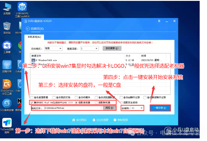 ![]() 2、選擇上面下載的WIN7(建議采用本站的WIN7自帶usb驅動、顯卡、nvme驅動)及要安裝的盤符,一般情況是C盤(根據不同的硬盤分區(qū)),(注意:目前支持win7集顯的有:i3 10100、i3 10105以及部分i5 10400cpu(10400以上CPU需要搭配獨立顯卡安裝win7)。支持集顯的機器或獨立顯卡時當bios中無法開啟CSM兼容模式出現安裝win7卡lgoo的情況才勾選“解決UEFI WIN7 64位卡LOGO"選項,如果沒出現不建議勾選,另外注意勾選后可根據實際情況選擇適配老機器或適配新機器,建議400以上系列主板和10代cpu以上機器選擇適配老機型,反之選擇適配新機型,如果其中一種方式不行可選擇另一個方案),然后點擊一鍵安裝,如圖所示: ![]() 4,拔掉U盤電腦重啟后,系統會自動完成后續(xù)的程序安裝,直到看到桌面,系統就徹底安裝成功了,如果進入系統后驅動不完整可以點擊桌面的驅動總裁補全驅動。 ![]() 以上就是關于10代以上cpu(10/11/12/13/14代)安裝win7解決方案。 閱讀原文:原文鏈接 該文章在 2025/2/21 12:25:08 編輯過 |