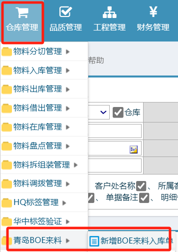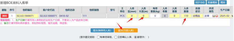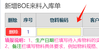 :點晴ERP-新增BOE來料入庫單![]() 點擊進入 如下圖: