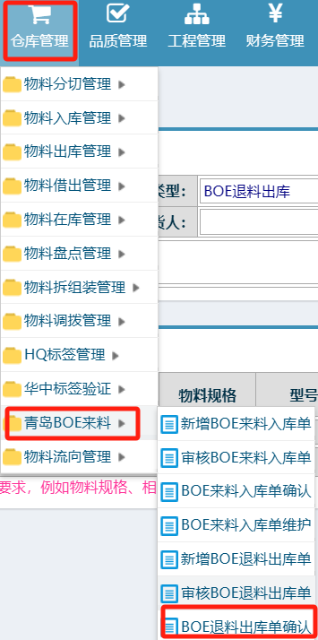 點(diǎn)晴模切ERP-駁回BOE退料出庫單