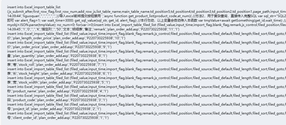:點晴ERP-自定義excel導入功能導出SQL語句![]() 點擊導出SQL 如下圖: