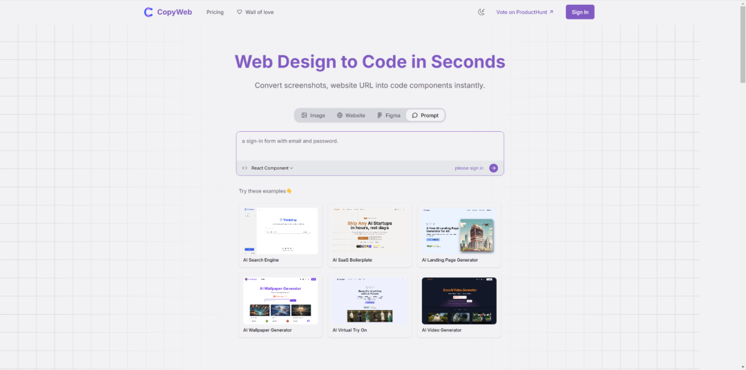 CopyWeb:AI網(wǎng)頁克隆工具,30秒就能把網(wǎng)頁或截圖圖片,一模一樣地用代碼復(fù)現(xiàn)