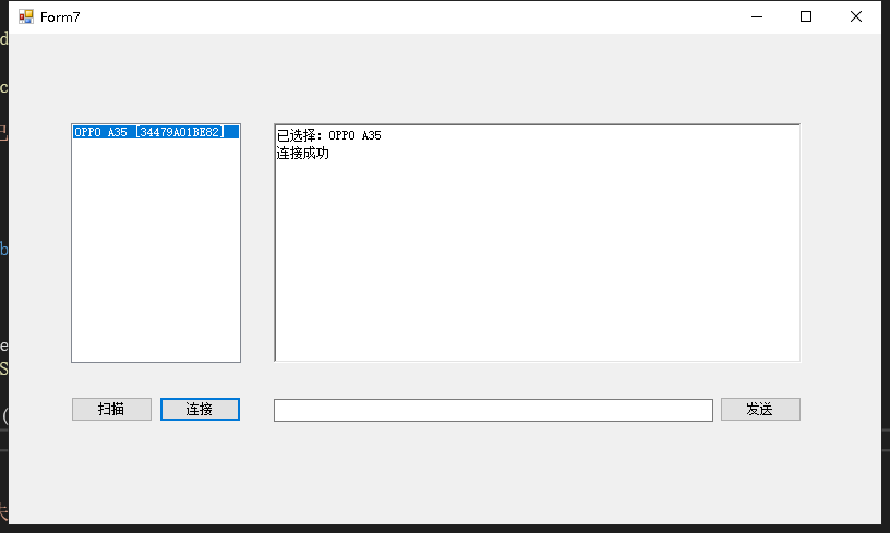 private void lstDevices_SelectedIndexChanged(object sender, EventArgs e){ var selected = btClient.DiscoverDevices()[lstDevices.SelectedIndex]; selectedDevice = selected; richTextBox1.AppendText($"已選擇:{selected.DeviceName}\n");}