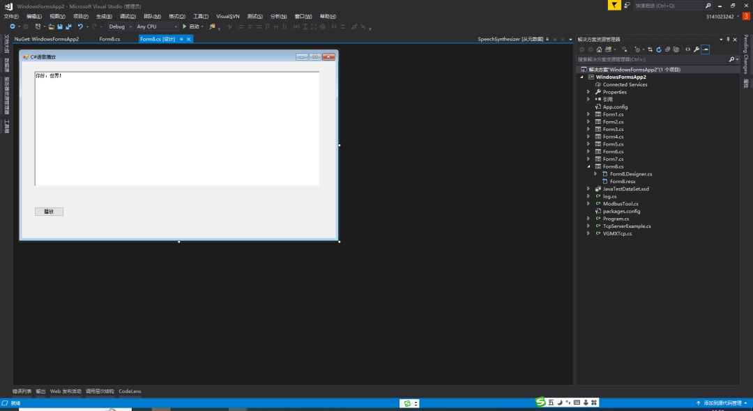 string textToSpeak = richTextBox1.Text;//"你好,世界!"; // 示例文本