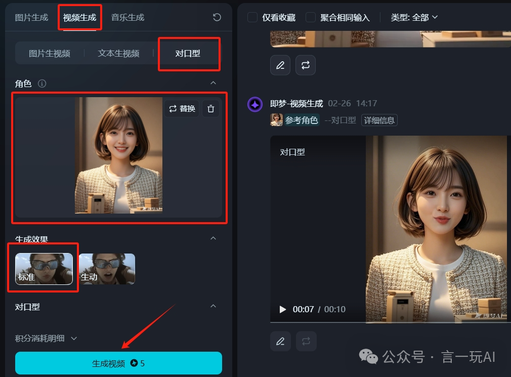 第二步是對(duì)口型 選擇生成視頻對(duì)口型,導(dǎo)入剛剛下載的圖片,在對(duì)口型文本朗讀對(duì)話框填入要朗讀的文本,最多可填入110多個(gè)字符,生成30秒的視頻,再選擇朗讀音色,調(diào)節(jié)好說(shuō)話的速度,對(duì)口型的生成效果,選擇標(biāo)準(zhǔn),點(diǎn)擊生成視頻。沒(méi)問(wèn)題就可以下載到電腦上。 口播形象的數(shù)字人就制作出來(lái)了。