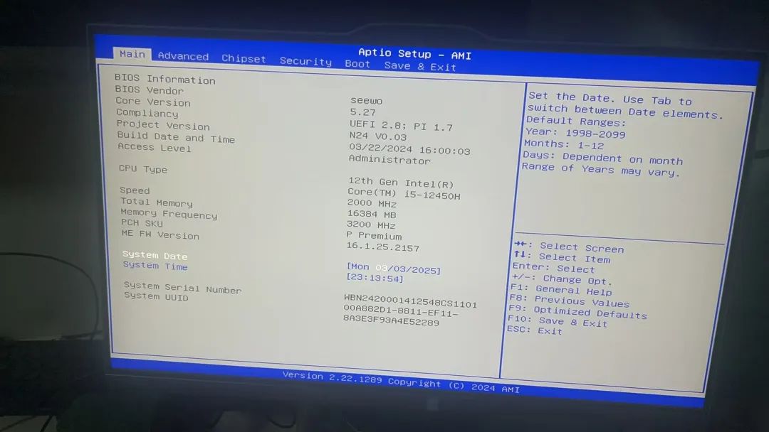 首先我們來看一下,我朋友給老師買的是i5-12450H的CPU,我們都知道,i5-12代CPU本來就不支持win7了,但是是網(wǎng)上說,有獨(dú)立顯卡是可以支持的,我這個(gè)朋友就想再試試。但是他提供的電腦都是集成顯卡,也沒有獨(dú)立顯卡,那我們先不管這么多了,我們先測試一下吧。于是我先讓他測試一下,win7系統(tǒng),先不要給客戶遷移,自己先測試一下,看看這新電腦是否可以直接安裝win7系統(tǒng)。就算換版本能ghost,但是安裝完成之后,無法引導(dǎo)系統(tǒng),直接進(jìn)入到BIOS中了。