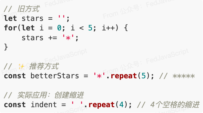 字符串操作在 JavaScript 里隨處可見,掌握一些高效的字符串操作技巧,不僅能讓代碼更優(yōu)雅,還能大大提升開發(fā)效率。分享8個(gè)實(shí)用的JavaScript字符串操作技巧! 1. 使用模板字符串簡化字符串拼接傳統(tǒng)的字符串拼接方式使用 + 號(hào),代碼往往顯得雜亂且容易出錯(cuò)。使用ES6的模板字符串,可以讓代碼更清晰易讀: 2. 字符串截取的簡便寫法獲取字符串的前N個(gè)或后N個(gè)字符時(shí),可以使用slice()的負(fù)數(shù)索引特性: 3. 快速重復(fù)字符串需要重復(fù)同一個(gè)字符串多次時(shí),使用repeat()方法比循環(huán)更簡潔: