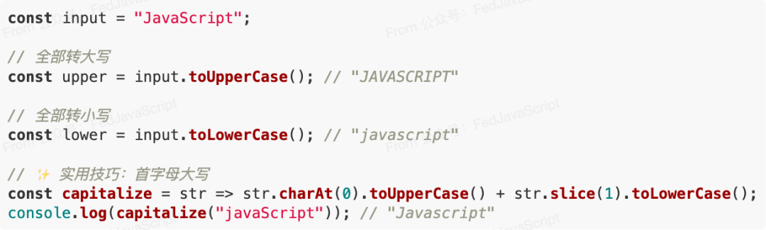 6. 快速轉(zhuǎn)換字符串大小寫處理用戶輸入或格式化顯示時(shí),經(jīng)常需要轉(zhuǎn)換大小寫: