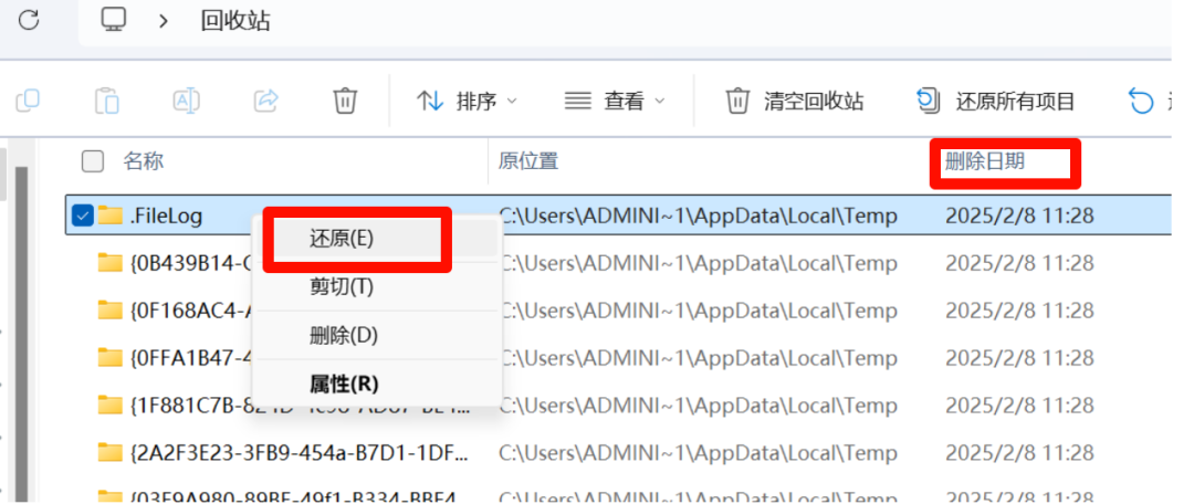 工作中難免遇到數(shù)據(jù)文件被誤刪的情況,誤刪,肯定是無心之舉,有時(shí)候忙的暈頭轉(zhuǎn)向,可能手一抖就把重要文件給誤刪了,得了,白忙活了,數(shù)據(jù)重要的話影響還很大;有時(shí)候又想把之前刪除的文件給恢復(fù)回來,說白了就是后悔刪數(shù)據(jù)了??梢姅?shù)據(jù)備份才是王道,平時(shí)用不到的數(shù)據(jù),一刪掉,可能馬上就要用到了,所以,個(gè)人數(shù)據(jù)最好買個(gè)移動(dòng)硬盤或者U盤定時(shí)備份一下。 那么,誤刪的文件就沒有辦法找回了嗎?別著急,今天就來聊聊如何找回誤刪的文件? 方法一:通過回收站找回 這個(gè)方法基本人人都會(huì),直接按delete鍵刪除的文件一般都會(huì)保留在回收站中,只需要打開回收站——找到需要恢復(fù)的文件——右擊選擇——還原。注意可以通過刪除日期判斷需要還原的文件。