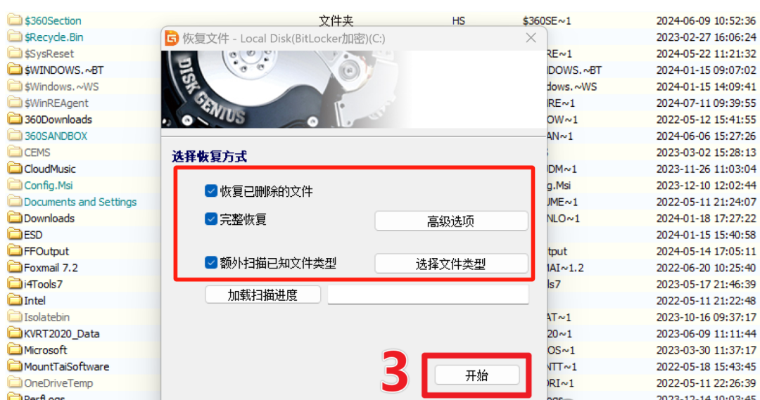 但是,有很多人喜歡用永久刪除快捷鍵——“shift+delete鍵”來刪除文件,那么使用“shift+delete鍵”刪除的文件是不在回收站的,文件還能找回嗎? 答案是可以找回的,但是是有前提的,刪掉之后一定不要繼續(xù)往磁盤寫入數(shù)據(jù),防止新數(shù)據(jù)覆蓋導(dǎo)致無法找回誤刪的文件,當(dāng)按下“Shift+Del”鍵刪除文件時(shí),操作系統(tǒng)會(huì)直接將文件所占用的磁盤空間標(biāo)記為可占用狀態(tài),而不會(huì)經(jīng)過回收站。這意味著在文件系統(tǒng)中,該文件的記錄被刪除,但實(shí)際的數(shù)據(jù)內(nèi)容仍然存儲(chǔ)在磁盤上,直到新的數(shù)據(jù)寫入并覆蓋被刪除文件所在的磁盤空間之前,這些數(shù)據(jù)一直存在。因此,如果能夠在這之前進(jìn)行恢復(fù)操作,就有可能找回被刪除的文件。 方法二:使用數(shù)據(jù)恢復(fù)軟件找回 推薦使用DiskGenius軟件,它是一款功能強(qiáng)大且專業(yè)的數(shù)據(jù)恢復(fù)軟件,可以恢復(fù)因誤刪、格式化、分區(qū)丟失、磁盤邏輯故障等原因丟失的數(shù)據(jù),硬盤,U盤,內(nèi)存卡,移動(dòng)硬盤等均可使用其來恢復(fù)數(shù)據(jù)。 今天演示一下如何使用DiskGenius恢復(fù)數(shù)據(jù)。 首先下載安裝DiskGenius軟件(綠色版)。 https://pan.baidu.com/s/1mgSww_DfglJ_WrnFRs7MdQ?pwd=1688? 提取碼:1688 開始演示,雙擊打開軟件,選擇數(shù)據(jù)丟失的磁盤——右鍵選擇——已刪除或格式化后文件的文件恢復(fù),可以選擇恢復(fù)方式和文件類型,點(diǎn)擊開始。