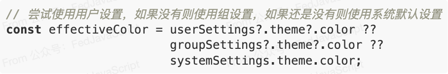 當(dāng)與可選鏈操作符(?.)結(jié)合使用時(shí),處理復(fù)雜嵌套對(duì)象變得異常優(yōu)雅: