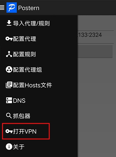 4、開啟使用VPN:保存后,點(diǎn)擊菜單里的【打開VPN】選項(xiàng)。