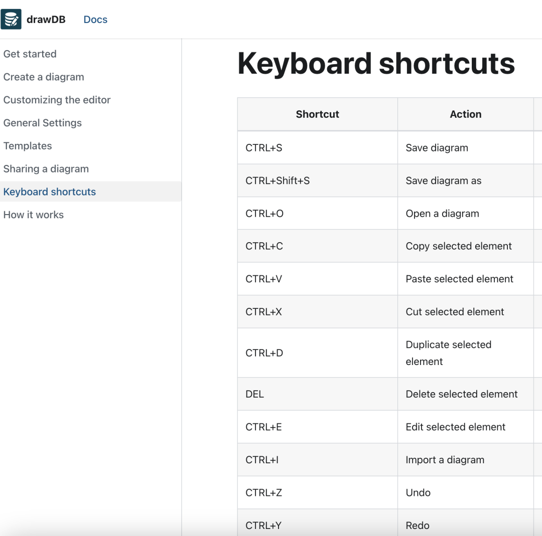 而且 DrawDB 內(nèi)置豐富的快捷鍵(如撤銷、復(fù)制),操作更快速便捷: