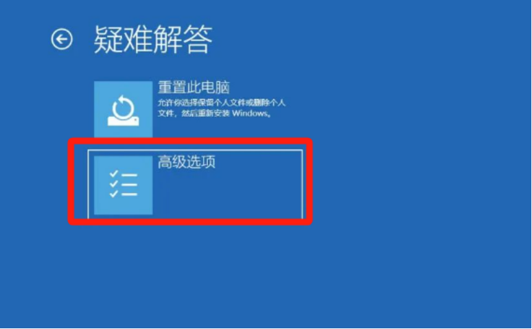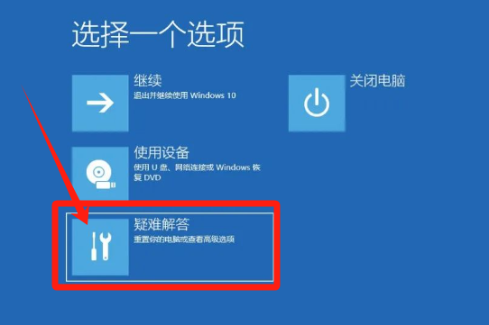 電腦重啟后,我們的目的是進入命令提示符,按以下步驟來操縱,選擇【疑難解答】