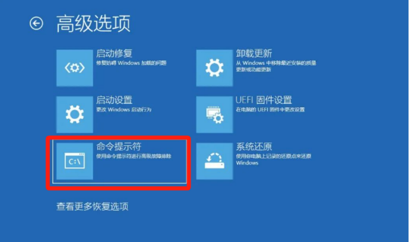 接著進入【高級選項】 ![]() ![]() 然后就打開了命令提示符界面。
