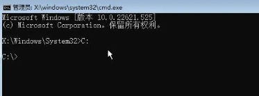 這里開始要輸入命令了。 ①在命令提示符窗口輸入C: 回車