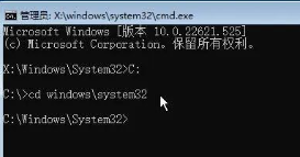 ②輸入cd windows\system32 回車(注意cd后有空格) 輸入cd..回車,是返回上一級目錄(如需用到)