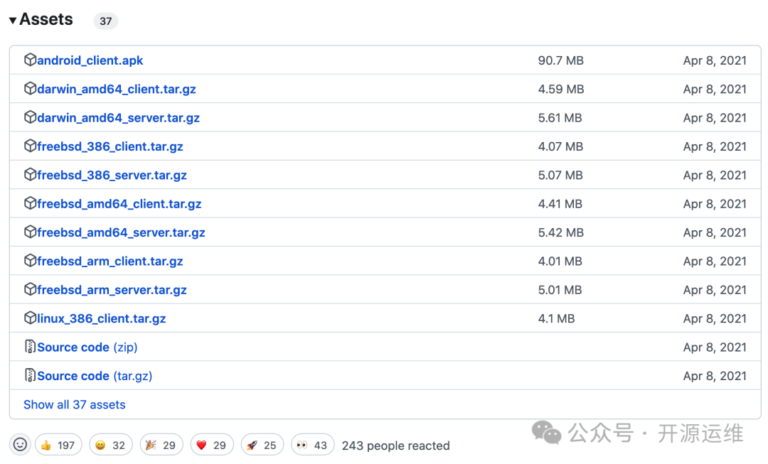 從 GitHub Releases 頁面選擇對應操作系統(tǒng)版本,單獨下載服務器端與客戶端。