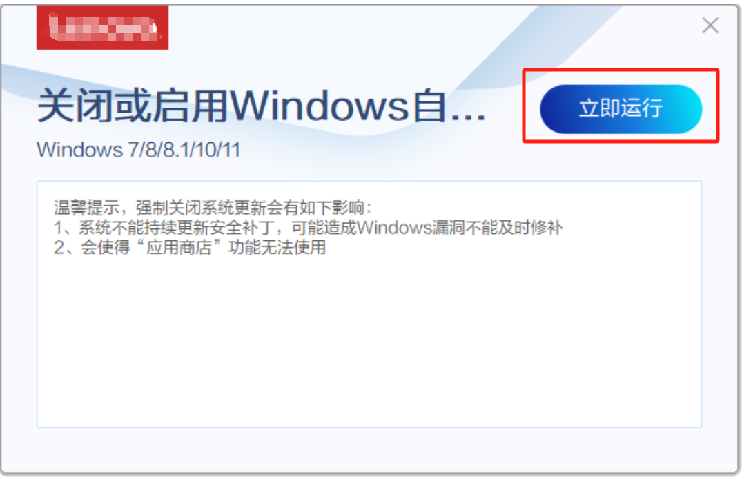 你是不是發(fā)現(xiàn)win10和win11系統(tǒng)經(jīng)常要自動(dòng)更新系統(tǒng),而且很難關(guān)閉,一般人只能推遲更新,到期之后就又會(huì)有新的更新,特別是在繁忙的時(shí)候還自動(dòng)更新重啟,電腦卡還會(huì)影響更新速度,一更新就要等十幾分鐘,非常耽誤事,今天分享一款良心實(shí)用的小工具,無需查找關(guān)閉方法,更無需對(duì)照著關(guān)閉方法來操作本地策略組,它是可執(zhí)行文件,直接安裝即可使用,無腦操作,方便快捷。 工具下載: 文件名:Defender Control.zip 鏈接: https://pan.baidu.com/s/1hSnZ_CXI9MKSS2rIg7JAKA?pwd=1209? 提取碼: 1209 軟件大小:0.5M 操作說明: 下載軟件后解壓,雙擊執(zhí)行安裝,點(diǎn)擊“立即運(yùn)行”,再點(diǎn)擊“關(guān)閉Windows更新”即可??梢园聪聎in+i打開電腦設(shè)置——Windows更新頁面查看是否關(guān)閉了更新。
