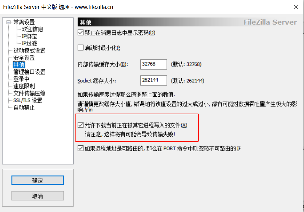 一、簡介 實際需求是在前端修改了配置文件后,由上位機統(tǒng)一分發(fā)給所有設(shè)備,因為下位機支持FTP協(xié)議,因此選用FTP來實現(xiàn)文件傳輸功能。 二、準(zhǔn)備工作1、FTP服務(wù)搭建FTP服務(wù)端選用FileZilla Server,免費開源,簡單好用,可以下載中文版的。下載地址:下載 - FileZilla中文網(wǎng),也可以直接從網(wǎng)盤拿: https://pan.baidu.com/s/1Rss5J2I-3kqzc1qD0CbOcg?pwd=aufr 提取碼: aufr。 2、安裝配置安裝比較簡單,略過不提,主要是有幾個配置要注意下(附上參考文檔,按照這里面的來基本不會有問題:用FileZilla搭建FTP服務(wù)器及相關(guān)問題 - Better - SegmentFault 思否): 編輯-設(shè)置-被動模式設(shè)置: