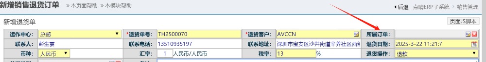 情況描述:審核銷售退貨單時彈出提示:已開啟補貨時自動生成補貨銷售單,單未找到所屬銷售訂單相應的明細,禁止做退貨審核,請修改補貨訂單生成規(guī)則或者選擇正確的所屬銷售訂單號 如下圖: ![]() 原因:做銷售退貨單時未選擇對應銷售訂單號