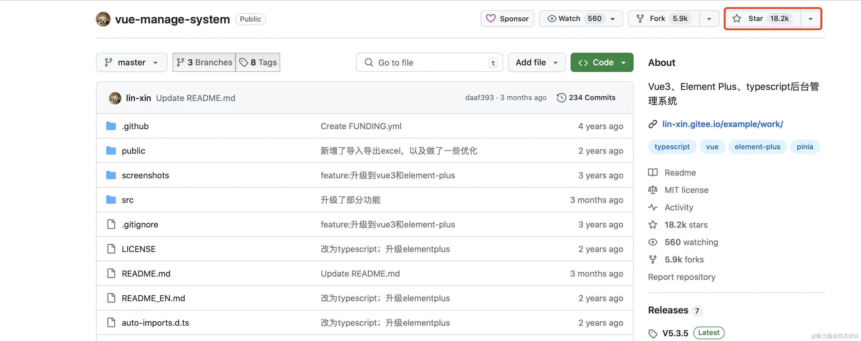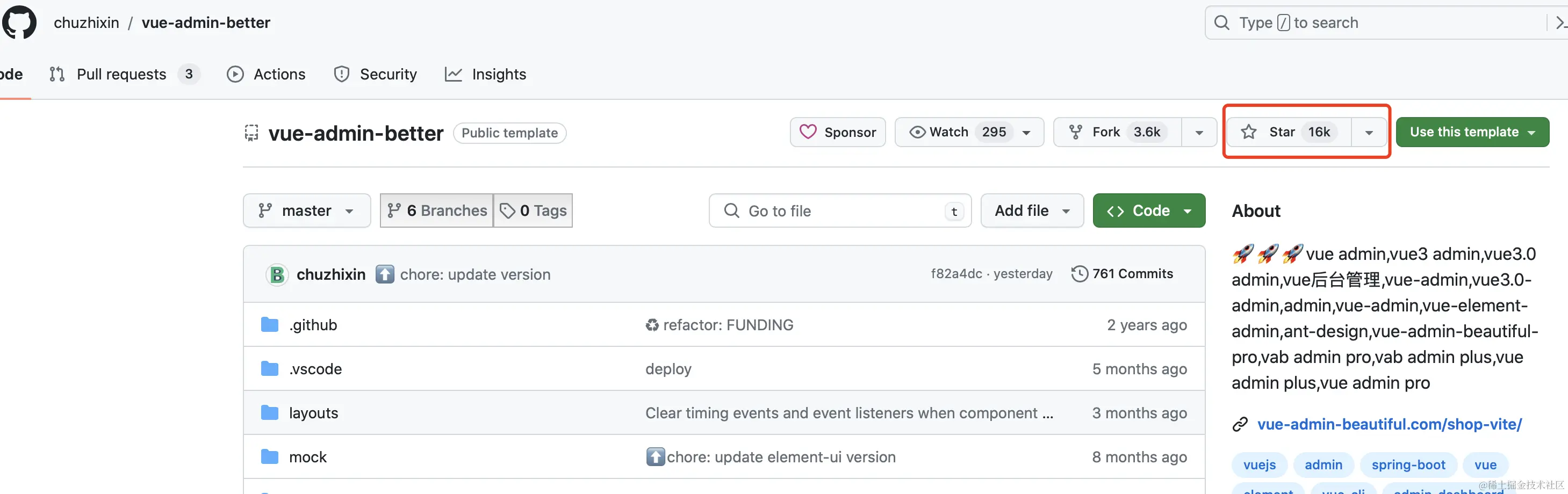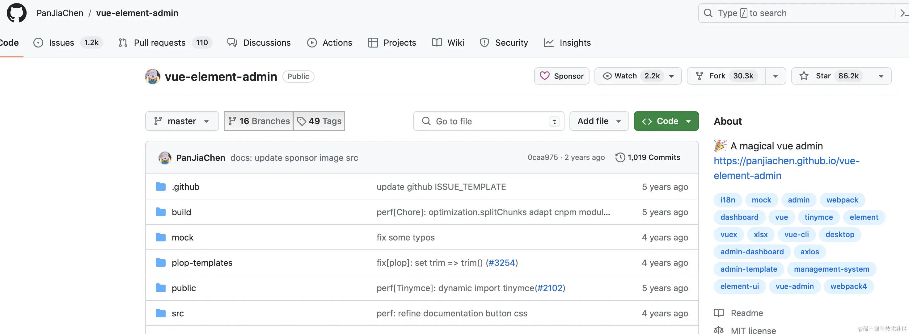 基于Vue和Element-UI實(shí)現(xiàn)的后臺(tái)前端解決方案,使用了最新的前端技術(shù)棧,內(nèi)置了i18n國(guó)際化解決方案,動(dòng)態(tài)路由,權(quán)限驗(yàn)證等。Github上已被Star86.2k,這個(gè)就牛逼了,功能豐富,界面美觀,V哥覺得還是很不錯(cuò)的。