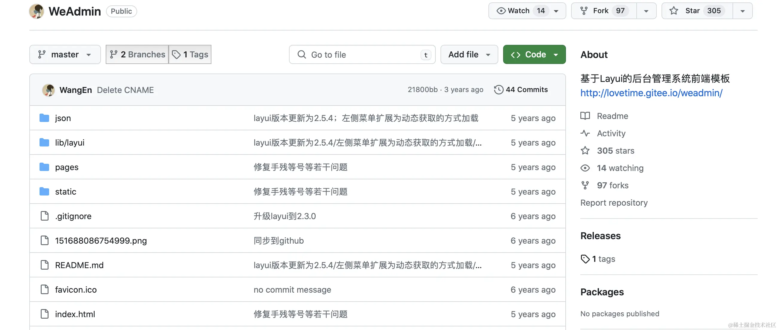 一個(gè)完全開源免費(fèi)的企業(yè)中后臺(tái)產(chǎn)品前端集成方案,使用最新的前端技術(shù)棧,具有小于60kb的本地首屏js加載,已經(jīng)做好大部分項(xiàng)目前期準(zhǔn)備工作,并且?guī)в写罅渴纠a。Github上已被Star740,有點(diǎn)少啊,不知道為啥?V哥看看界面還是比較清爽型的,適合簡(jiǎn)單的應(yīng)用。