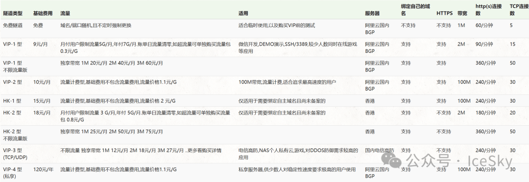 另外還有幾個(gè)在線配置,客戶端通過命令行即可進(jìn)行端口映射的工具: natapp:https://natapp.cn/ 按隧道收費(fèi),可以創(chuàng)建3個(gè)免費(fèi)隧道,免費(fèi)隧道提供http,tcp,udp全隧道穿透,隨機(jī)域名/隨機(jī)TCP、UDP端口,不定時(shí)強(qiáng)制更換域名/端口,可以自定義本地端口,如果要固定域名/端口就需要購(gòu)買VIP隧道。