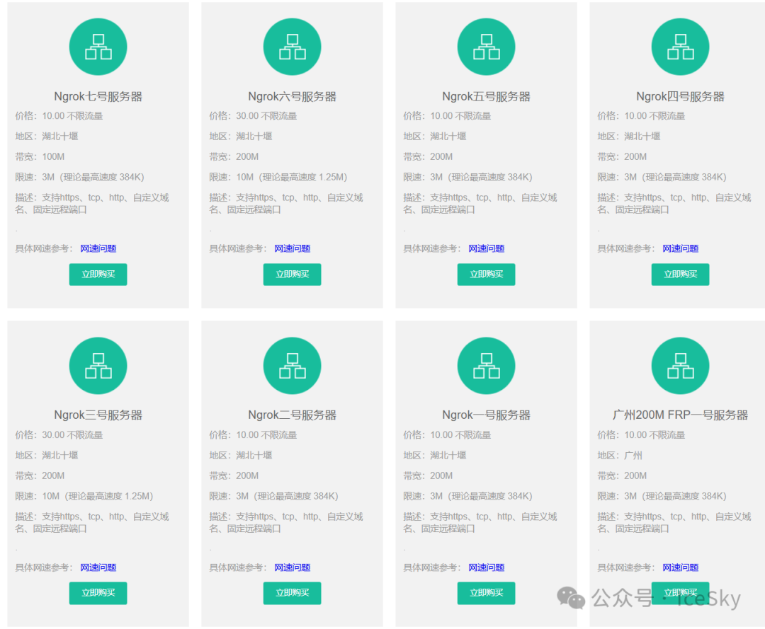 Sunny-Ngrok:https://www.ngrok.cc/ ngrok的國(guó)內(nèi)版本,提供Ngrok和Frp兩種服務(wù)器,兩種服務(wù)器都支持http、https、tcp轉(zhuǎn)發(fā),Ngrok不支持udp轉(zhuǎn)發(fā),但是Frp支持udp的。