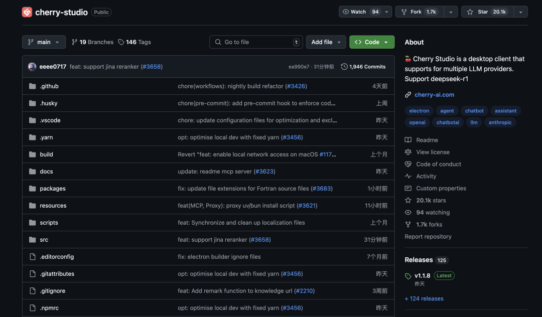 接入了 DeepSeek 的個(gè)人開源知識(shí)庫(kù),有點(diǎn)意思。Cherry Studio 是一款開源了的跨平臺(tái)應(yīng)用,兼容 Windows、Mac 和 Linux 系統(tǒng),集大模型對(duì)話、知識(shí)庫(kù)管理、智能體工作流于一體。目前在 GitHub 上已經(jīng)獲得了 20K 的 Star ,挺火爆。