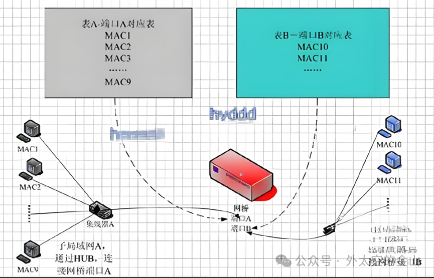 網(wǎng)橋和交換機(jī)區(qū)別在敘述前,我們先一起看兩幅圖: 1.網(wǎng)橋的連接模式:(紅點(diǎn)處為HUB)