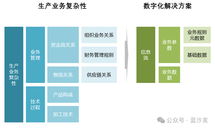總結(jié) 生產(chǎn)業(yè)務(wù)的復(fù)雜性包括三個(gè)方面:產(chǎn)品技術(shù)決定的工藝過程復(fù)雜性,產(chǎn)品構(gòu)成和供應(yīng)鏈關(guān)系決定的物流關(guān)系復(fù)雜性,財(cái)務(wù)管理決定的物流資金流關(guān)系復(fù)雜性,前者表現(xiàn)在技術(shù)操作層,后兩者體現(xiàn)在管理層。因此,生產(chǎn)管理復(fù)雜主要就是物流和資金關(guān)系的復(fù)雜性上,它們需要通過嚴(yán)格細(xì)致的參數(shù)驅(qū)動(dòng)的信息流予以實(shí)現(xiàn),因此,生產(chǎn)業(yè)務(wù)架構(gòu)設(shè)計(jì)中的重難點(diǎn)在于數(shù)據(jù),而數(shù)據(jù)的重難點(diǎn)在于基礎(chǔ)數(shù)據(jù),特別是業(yè)務(wù)規(guī)則數(shù)據(jù)。