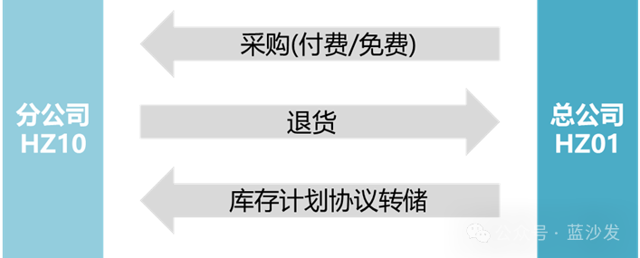 業(yè)務類型及流程 某集團內(nèi)分公司HZ10和總公司HZ01之間存在業(yè)務往來,以分公司向總公司采購為例,采購對象包括:物資、委外加工、服務、寄售,其中物資采購流程包括:采購(付費或免費)、退貨、計劃協(xié)議庫存轉儲。