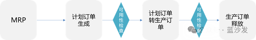 ATP檢查在業(yè)務(wù)架構(gòu)中的定位 生產(chǎn)ATP檢查發(fā)生在MRP之后,具體來說:MRP運行產(chǎn)生計劃訂單,計劃訂單需要轉(zhuǎn)為生產(chǎn)訂單,并繼續(xù)進行生產(chǎn)訂單的釋放,釋放后的生產(chǎn)訂單即可安排生產(chǎn)。ATP檢查發(fā)生在計劃訂單轉(zhuǎn)生產(chǎn)訂單以及生產(chǎn)訂單釋放這兩個環(huán)節(jié)。 在流程上 ,ATP檢查是一個數(shù)據(jù)分析動作,為訂單處理(計劃訂單轉(zhuǎn)生產(chǎn)訂單、生產(chǎn)訂單釋放)動作提供決策依據(jù)。 在數(shù)據(jù)上,ATP檢查包括檢查規(guī)則及其配置,屬于業(yè)務(wù)元數(shù)據(jù)范疇。