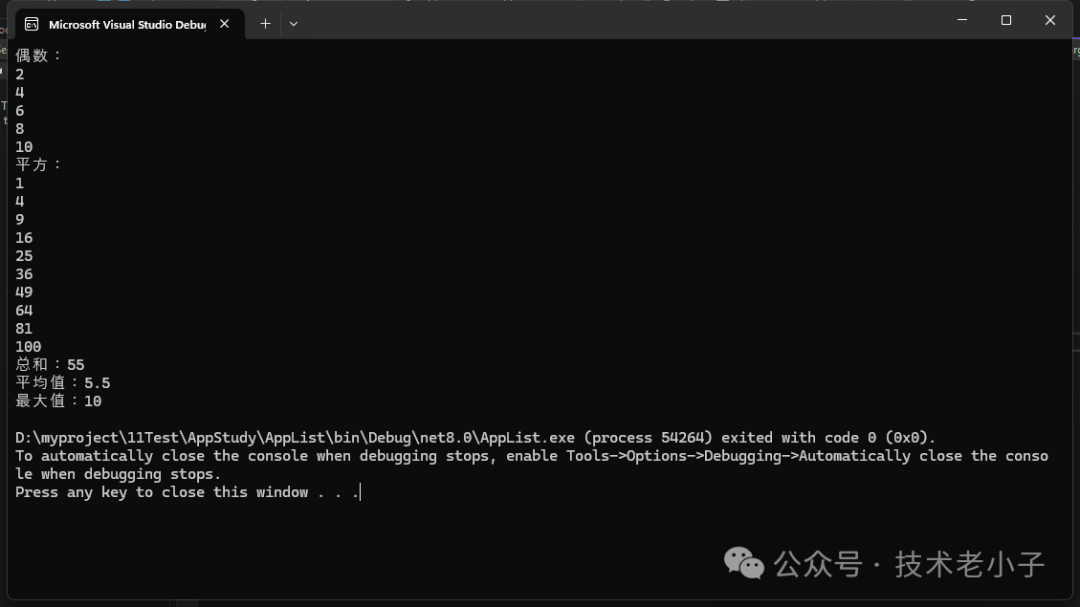 List<int> numbers = new List<int> { 1, 2, 3, 4, 5, 6, 7, 8, 9, 10 }; // 篩選 var evenNumbers = numbers.Where(n => n % 2 == 0).ToList(); Console.WriteLine("偶數(shù):"); foreach (var number in evenNumbers) { Console.WriteLine(number); } // 轉(zhuǎn)換 var squared = numbers.Select(n => n * n).ToList(); Console.WriteLine("平方:"); foreach (var number in squared) { Console.WriteLine(number); } // 聚合 var sum = numbers.Sum(); var average = numbers.Average(); var max = numbers.Max(); Console.WriteLine($"總和:{sum}"); Console.WriteLine($"平均值:{average}"); Console.WriteLine($"最大值:{max}");