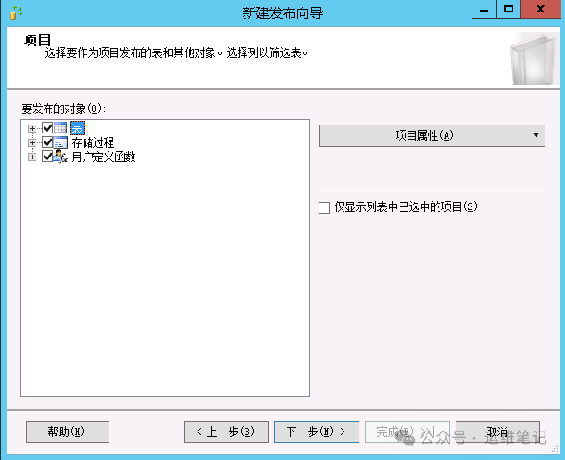2.6 選擇發(fā)布對象點擊【下一步】,選擇數(shù)據(jù)庫中的發(fā)布對象,選擇所需的表、視圖,也可選擇所有的表