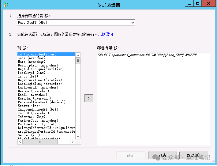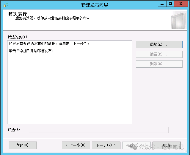 2、如果需要篩選表行點擊【添加】就會出現(xiàn)如下的篩選器對話框,可在篩選語句中添加 SQL 查詢語句