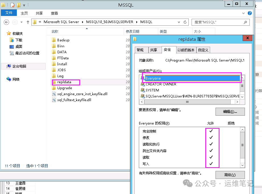 2.12 設(shè)置文件夾權(quán)限發(fā)布創(chuàng)建完成后設(shè)置 C:\Program Files\Microsoft SQL Server\MSSQL10_50.MSSQLSERVER\MSSQL 路勁下 repldata 文件權(quán)限