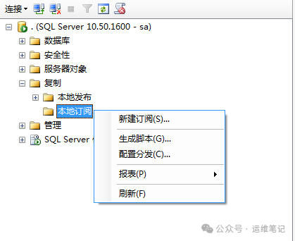 最近小編遇到了微軟故障轉(zhuǎn)移集群有臺服務(wù)器掛掉了,RoseHA雙機熱備存儲有故障了,修起來是真不好修,考慮他們的數(shù)據(jù)量不大,可以不可以用數(shù)據(jù)庫數(shù)據(jù)同步功能,然后再用python程序監(jiān)控數(shù)據(jù)庫服務(wù)和主機,通過心跳線Socket通信,如果備機接收不到主機存活信息,就啟動備機數(shù)據(jù)庫服務(wù)和刷入主機的IP地址,以下是SQLserver2008R2發(fā)布和訂閱功能,后續(xù)我將一步一步實現(xiàn)這個雙機熱備功能。1 部署事項1、發(fā)布服務(wù)器跟訂閱服務(wù)器必須在同一局域網(wǎng)內(nèi) 2、發(fā)布的時候 SQL Server 需要有實際的服務(wù)器名稱才能連接到服務(wù)器。不支持通過服務(wù)器別名、IP 地址或者其他備用名稱進行連接。因此如果當(dāng)前的 SQL Server 的連接是 IP 地址的話,最好斷開連接,以實際的服務(wù)器名稱重新進行登錄 2 發(fā)布部署2.1 新建發(fā)布展開 SQL Server 2008 服務(wù)器下的 【復(fù)制】 節(jié)點,會發(fā)現(xiàn)有【本地發(fā)布】和【本地訂閱】兩個節(jié)點,右擊【本地發(fā)布】節(jié)點,選擇【新建發(fā)布】