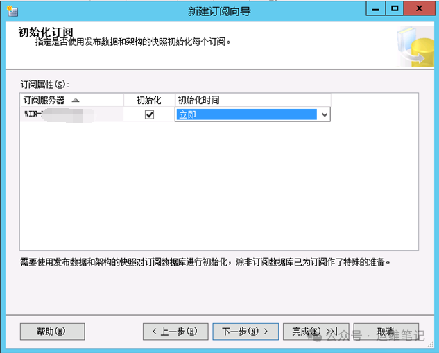 3.7 初始化訂閱 點擊【下一步】,進入【初始化訂閱】對話框,選擇 “立即” 初始化