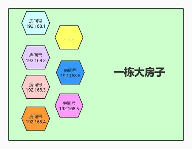 我們再來擴(kuò)展一下,在一棟大樓里面,有好多個這樣的密閉房間,每個密閉的房間也都有一群人,那么要怎么定位到某一個房間里面的一個人呢? 答案肯定也還是編號,給每個房間編號,例如1號房間里面的1號,這樣就能定位到特定的那一個人了,這時候我們把房間號也加入到人的編號當(dāng)中去,房間號和人的編號用一個"."間隔開來,例如1.1號,說明就這個人就是1號房間里面的1號人。 網(wǎng)絡(luò)設(shè)備中的IP地址也是如此,例如192.168.1.100,我們可以這樣理解,192.168.1號房間,也就是我們會提到的網(wǎng)段,100就是在這個網(wǎng)段里面的編號100的設(shè)備。