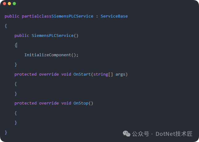 前言在實(shí)際工作中,我們常常需要開發(fā)運(yùn)行在后臺、無需用戶交互的應(yīng)用程序。例如,定時(shí)讀取西門子PLC的數(shù)據(jù)并保存到數(shù)據(jù)庫中。為了實(shí)現(xiàn)這一目標(biāo),我們可以選擇使用C#創(chuàng)建一個(gè)Windows服務(wù)。 在本篇文章中,將介紹如何基于C#創(chuàng)建一個(gè)Windows服務(wù),并實(shí)現(xiàn)對西門子PLC的定時(shí)讀取和保存功能,希望這篇文章能為大家提供有價(jià)值的參考。 Windows 服務(wù)說明Windows 服務(wù)是一種特殊類型的應(yīng)用程序,能夠在系統(tǒng)啟動(dòng)時(shí)自動(dòng)運(yùn)行,并且無需用戶登錄即可執(zhí)行。 它非常適合用于需要在后臺持續(xù)運(yùn)行的任務(wù),尤其是在無人值守環(huán)境中。 適用場景1、持續(xù)運(yùn)行的任務(wù)日志采集:定時(shí)收集系統(tǒng)或應(yīng)用程序的日志數(shù)據(jù)。 網(wǎng)絡(luò)代理:作為中間層處理網(wǎng)絡(luò)請求和響應(yīng)。 數(shù)據(jù)同步:定期同步不同系統(tǒng)之間的數(shù)據(jù)。 2、系統(tǒng)后臺維護(hù)自動(dòng)更新:定時(shí)檢查并安裝系統(tǒng)或應(yīng)用程序的更新。 性能監(jiān)控:實(shí)時(shí)監(jiān)控系統(tǒng)的性能指標(biāo)(如CPU、內(nèi)存使用率等)。 備份任務(wù):定時(shí)執(zhí)行數(shù)據(jù)備份操作。 3、無人值守環(huán)境中的任務(wù)定時(shí)任務(wù)調(diào)度:在特定時(shí)間點(diǎn)執(zhí)行預(yù)定義的任務(wù)。 設(shè)備監(jiān)控:監(jiān)控硬件設(shè)備的狀態(tài)并進(jìn)行相應(yīng)處理(如讀取PLC數(shù)據(jù))。 核心特性1、通過服務(wù)控制管理器(SCM)管理 SCM 是 Windows 操作系統(tǒng)中用于管理服務(wù)的一個(gè)組件。通過 SCM,可以方便地安裝、啟動(dòng)、停止、暫停和刪除服務(wù)。 2、與用戶登錄狀態(tài)無關(guān) Windows 服務(wù)可以在沒有任何用戶登錄的情況下運(yùn)行。這意味著即使沒有用戶活動(dòng),服務(wù)也可以在后臺持續(xù)工作。 3、支持系統(tǒng)啟動(dòng)時(shí)自動(dòng)運(yùn)行 可以配置服務(wù)在系統(tǒng)啟動(dòng)時(shí)自動(dòng)運(yùn)行,確保關(guān)鍵任務(wù)始終處于激活狀態(tài)。這對于需要高可用性的應(yīng)用尤其重要。 4、靈活的權(quán)限設(shè)置 Windows 服務(wù)可以配置不同的權(quán)限級別,允許它們訪問特定的系統(tǒng)資源或執(zhí)行特定的操作。例如,某些服務(wù)可能需要管理員權(quán)限才能正常運(yùn)行。 5、事件日志記錄 Windows 服務(wù)可以將運(yùn)行時(shí)的信息記錄到系統(tǒng)事件日志中,便于后續(xù)的故障排查和審計(jì)。 6、多實(shí)例支持 在某些情況下,可以運(yùn)行多個(gè)相同的服務(wù)實(shí)例,每個(gè)實(shí)例處理不同的任務(wù)或數(shù)據(jù)集。 開發(fā)與部署開發(fā)工具:通常使用 C# 或其他 .NET 語言通過 Visual Studio 進(jìn)行開發(fā)。 安裝包:可以通過安裝腳本或工具(如 sc.exe 命令行工具或第三方工具如 NSSM)來創(chuàng)建和管理服務(wù)。 調(diào)試與測試:可以使用 Visual Studio 的調(diào)試功能或?qū)S玫恼{(diào)試工具來測試服務(wù)的行為。 Windows服務(wù)創(chuàng)建1、創(chuàng)建一個(gè)新項(xiàng)目,項(xiàng)目模板選擇Windows服務(wù)(.Net Framework):
