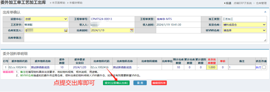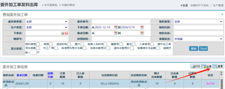 點晴模切ERP-委外加工單領(lǐng)料出庫-操作流程