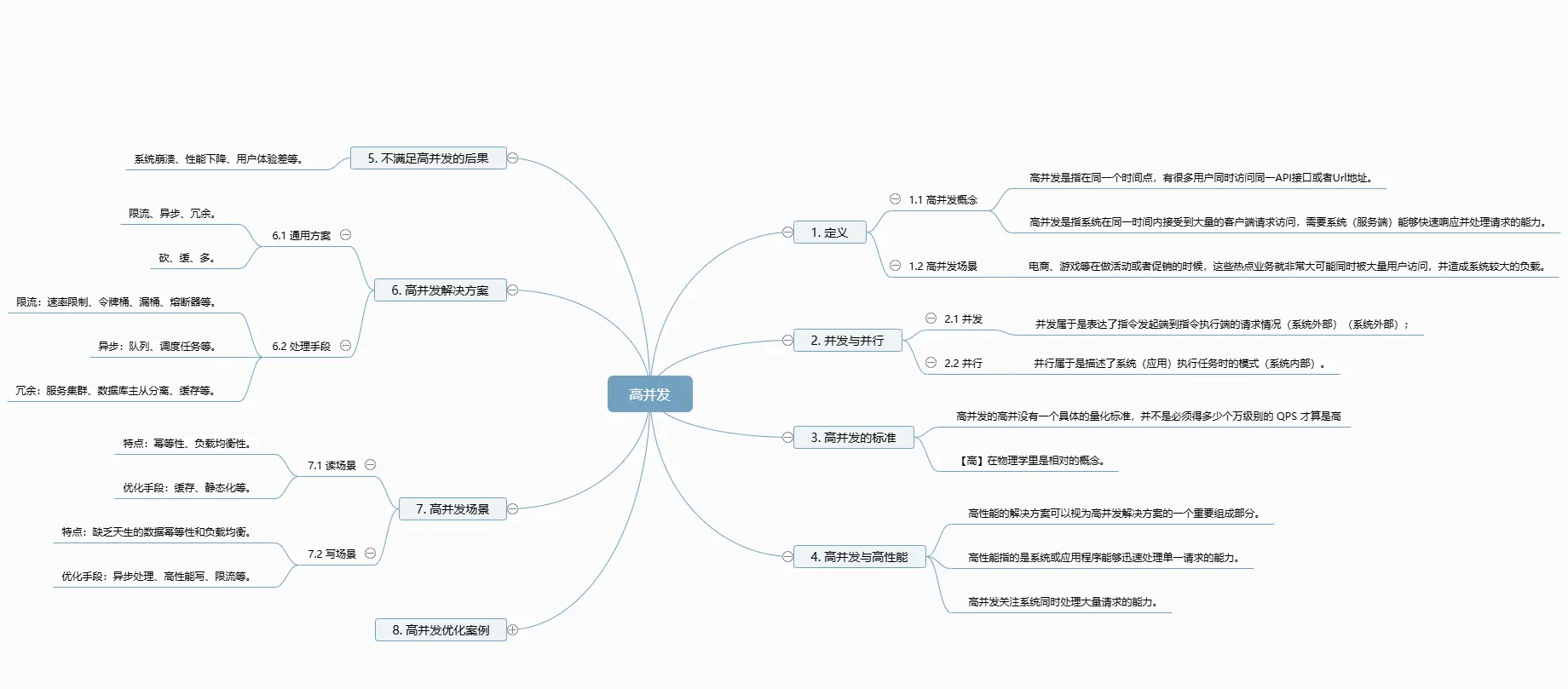 這是接近一篇萬字長(zhǎng)文,為方便大家閱讀,我整理了文章的大綱并以思維導(dǎo)圖的形式展示。你可以根據(jù)自己的興趣點(diǎn)選擇性閱讀,希望這篇文章能為你應(yīng)對(duì)高并發(fā)場(chǎng)景提供啟發(fā)與幫助。