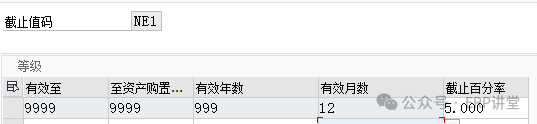 固定資產(chǎn)折舊方法的配置 1、定義終值代碼 事務(wù)代碼:ANHAL 系統(tǒng)路徑:IMG->財務(wù)會計->資產(chǎn)會計核算->折舊->評估方法->更多設(shè)置->定義終值碼 配置目的:定義固定資產(chǎn)的殘值率 配置屏幕: