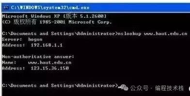 2、查看www.haut.edu.cn的IP 在提示符后輸入要查詢的IP地址或域名并回車即可。